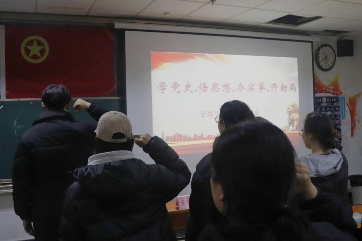 会议最后,所有参会团员共同举起右拳重温入团誓词。