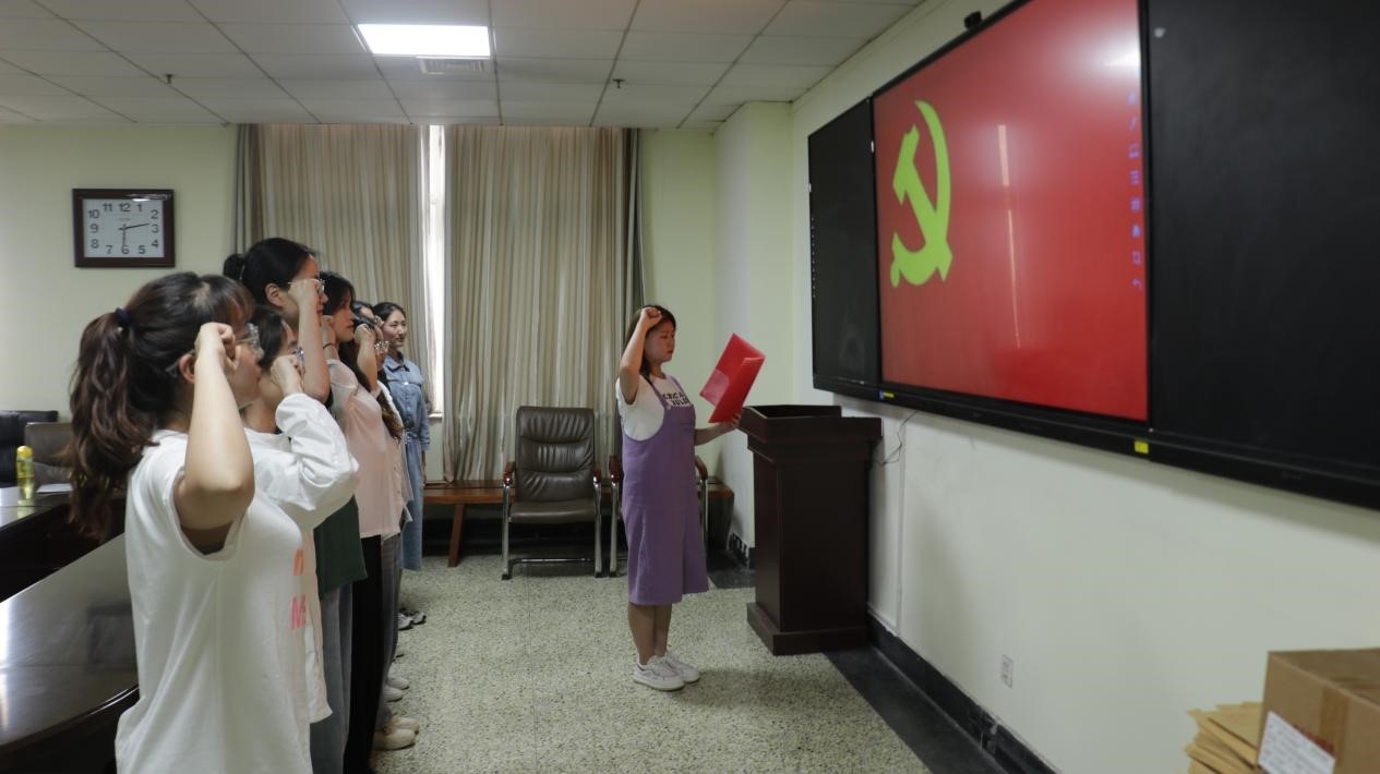 图为预备党员进行宣誓