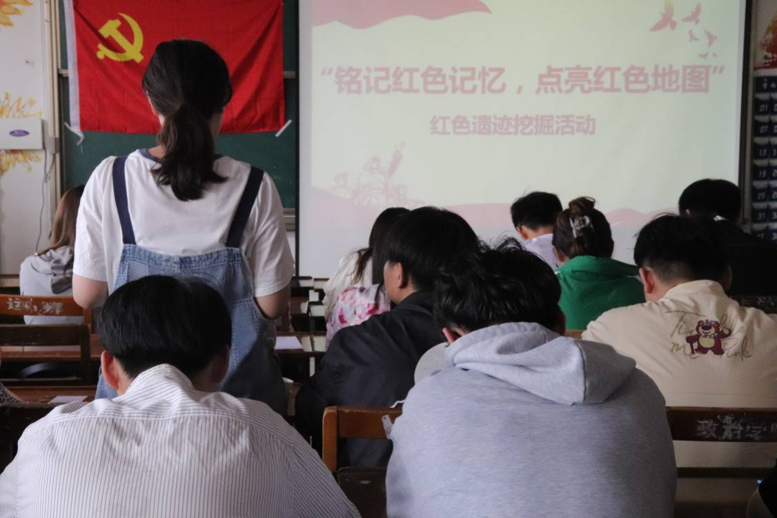 本次主题党日活动共两个模块,分别为“鉴红歌岁月,品峥嵘故事”之猜红歌比赛以及“铭记红色记忆,点亮红色地图”之红色遗迹挖掘活动。活动伊始,主持人为新入党的学生党员送上寄语,指出作为党员要始终保持昂扬的斗志,思想上更加坚定,行动上更加果敢,努力学习,严格要求自己,争做一名优秀党员。随后,各学生党员积极参与红歌竞猜并在活动中分享讨论家乡的红色遗址,讲述本土党史和峥嵘岁月,点亮“红色地图”。最终,本次主题党日活动在全体党员齐唱《我与我的祖国》中顺利结束。