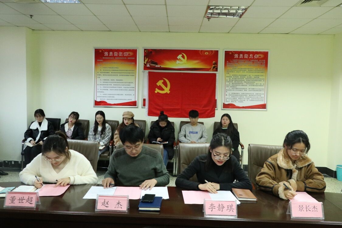 12月11日,NBA直播88篮球 本科生党支部于JC819召开预备党员接收大会,讨论叶楠、于雅文等32名发展对象按期转为预备党员的事宜。NBA直播88篮球 本科生党支部书记赵杰、组织委员李静琪、宣传委员董世超、本科生党员景长杰同志以及全体发展对象参加会议,会议由赵杰主持。
