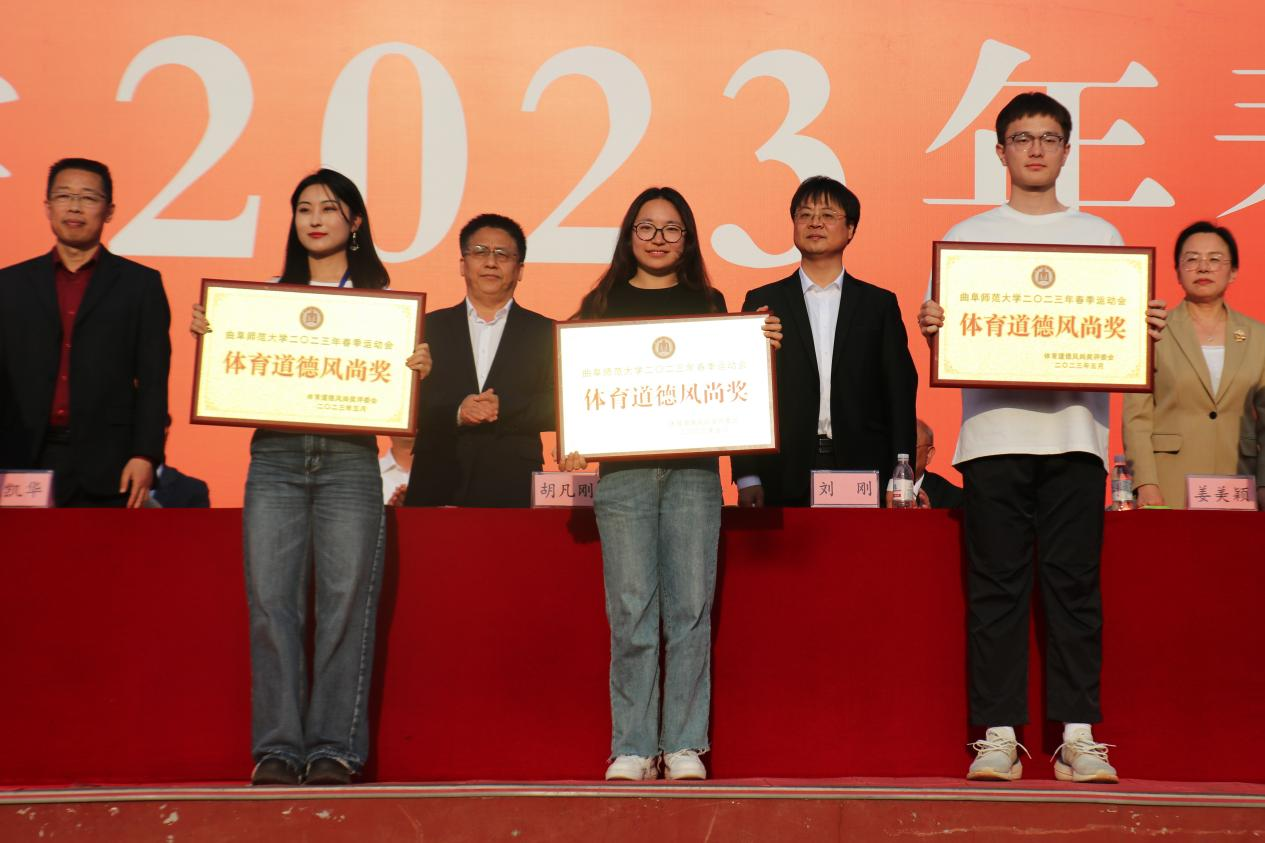 稼穑蓬勃,青春熠熠。首先,曲阜师范大学教职工足球队与曲阜师范大学女子足球队一场精彩绝伦的友谊赛燃动全场,同时标志着闭幕式正式开始。各88篮球 运动员入场后,由总裁判长张海涛宣布运动会的比赛成绩、2023年体育先进单位和先进个人。NBA直播88篮球 在本次学生组比赛中勇进七强,同时获得“体育先进单位”称号,其中八名同学获“体育先进个人”称号。随后,由学生工作处处长姜美颖宣布体育道德风尚奖结果,NBA直播88篮球 等六个88篮球 在获奖之列。闭幕式最后,党委常委、副校长胡凡刚致辞,他代表学校对运动会取得的优异成绩表示热烈祝贺,对全体工作人员表达由衷的感谢。胡凡刚指出,此次运动会是对学校体育教学成果的全面检阅,彰显了曲园学子锐意进取、踔厉分发的精神魄力,抒写了新时代的青春赞歌。在全场热烈的掌声中,2023年春季运动会落下帷幕。