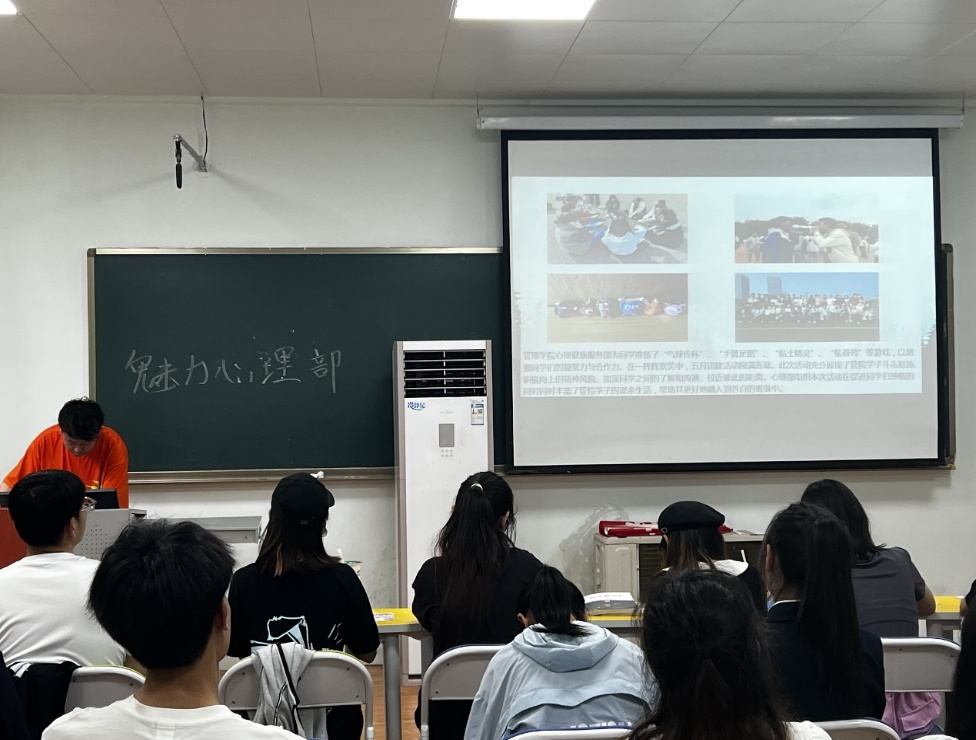 活动准备阶段,各88篮球 代表提前15分钟入场并签到,每个88篮球 有三分钟时间调试设备,随后NBA直播88篮球 心理部部长滕哲作为NBA直播88篮球 代表进行PPT展示并答辩,总结本学期的工作成果与收获,展现出NBA直播88篮球 心理部的独特风貌和强大凝聚力,最终荣获一等奖的优异成绩。
