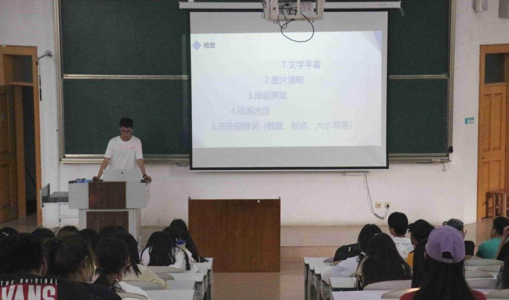 图为青马工程实践部干事讲解PPT制作技巧
