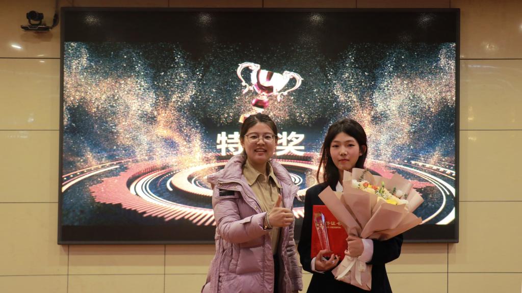 图为评委老师为特等奖选手颁奖