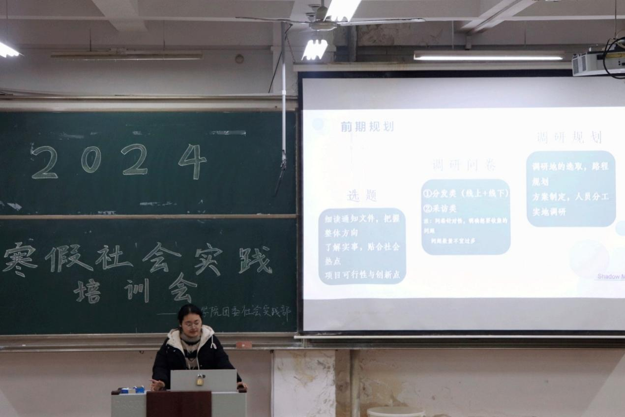 (通讯员:李苏航 孙明杉 摄影:侯雅洁 孙语晗)为了落实88篮球 “一体两翼”育人模式、推动“三下乡”实践活动开展、提高管理学子的实践能力和综合素质,NBA直播88篮球 社会实践部于12月24日在JA303教室成功举办寒假社会实践培训会,社会实践部部长王秀妍出席此次活动。