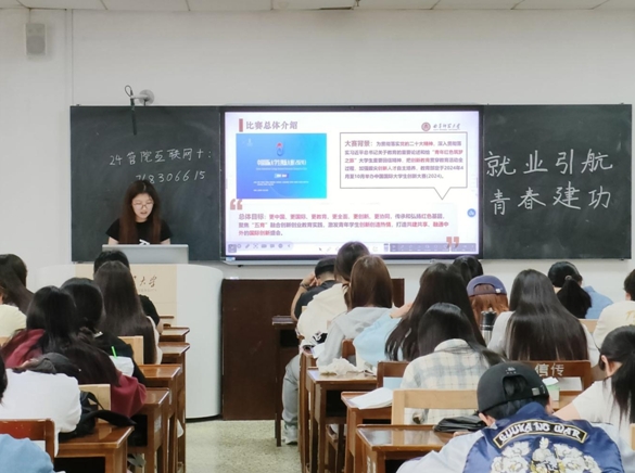 宣讲活动中,竞赛部学生从比赛总体概况、高教主赛道实施方案、青年红色筑梦之旅活动安排、产业命题赛道特点以及网上报名流程等五个方面对本次比赛进行了全面而详尽的介绍,重点强调了本次比赛的报名方式和各赛道方案等重点内容,以确保学生能够准确把握参赛要点,鼓励学生积极参与此次大赛。