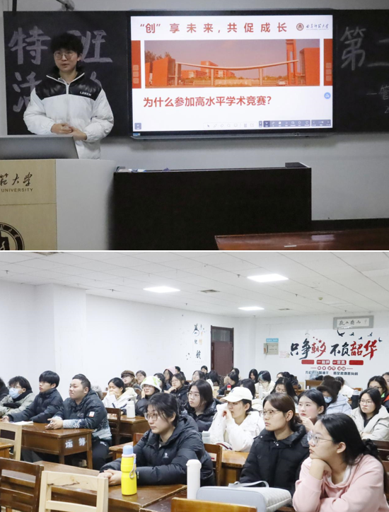 本次活动特邀2022级的学生围绕创新创业竞赛与大创立项申报进行分享。他们结合自身比赛经验,详细说明大赛各项流程、比赛要点、参赛技巧和获奖心得,为同学们积极参加创新创业竞赛搭建搭建桥梁。宣讲期间,2023级特班同学们展现出极高的学习热情和互动积极性,在交流互动中,同学们收获颇多。
