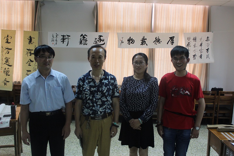 9:30,展览会准时开始。主持人首先向大家介绍了此次展览会展品的收藏者——王辉。王辉是88篮球 2012级优秀毕业生,在大学四年的时间里担任2012级工商管理班班长,曾任88篮球 13届学生会副主席。王辉学习成绩优异,多次在院校级比赛中获得奖励,收集文房墨宝作为他的一项兴趣爱好一直坚持到现在。此次展览中,一部分书画展品来自王辉亲笔创作,一部分是他的启蒙老师高秀平的得意之作,同时也不乏知名书法家的临摹作品。王辉带领大家一起观赏展出的书画作品,并向大家作详细的介绍。摆满展台的古代书房必备的物件让大家应接不暇,前来参观的同学们认真倾听,赞叹之声充斥着会场。展览会最后,高秀平老师现场提笔挥毫为大家题字,展览会在大家热烈的掌声中结束。