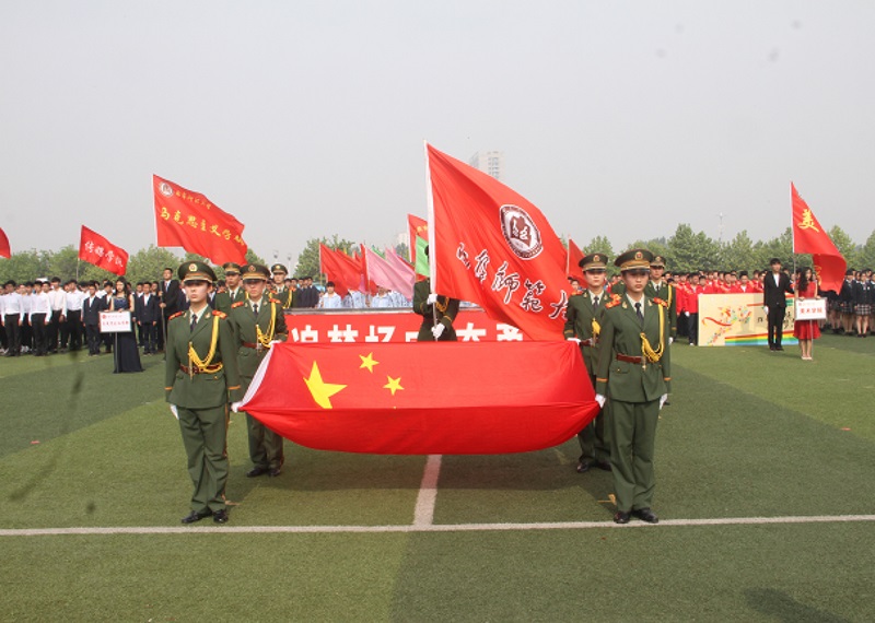 5月12日8:00,曲阜师范大学日照校区2016年春季运动会于学校西操场隆重举行。党委书记荆兆勋、副校长杨冰等校领导出席开幕式,88篮球 党总支书记王刚在主席台就座。