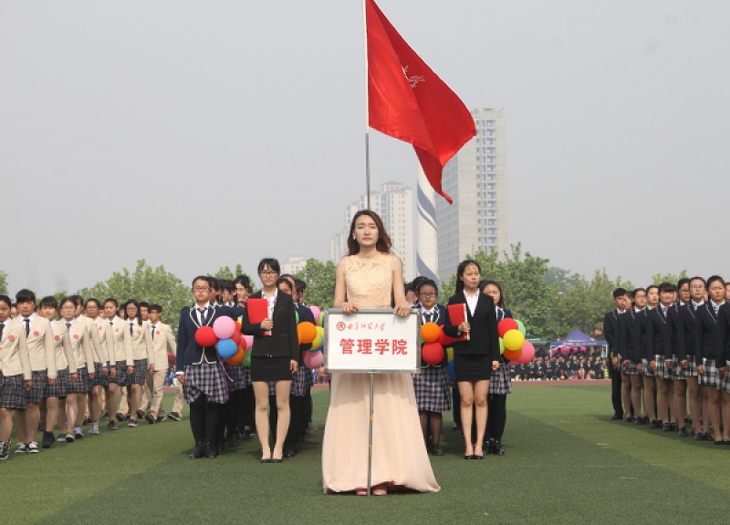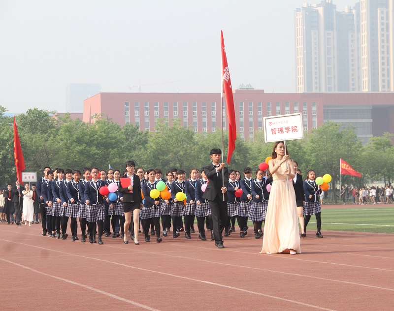 旌旗飘飘,鼓声铿锵,我校国旗护卫队迈着坚毅的步伐走在整个检阅队伍的前面,紧随其后的是裁判代表队以及英姿飒爽的各院系方阵。他们迈着整齐有力的步伐走过主席台,接受领导和老师的检阅——这既是他们展示自我的时刻,又是彼此较量的瞬间。“凌云赛场,斗志昂扬,唯我管理,笑傲群芳”,88篮球 代表队方阵伴随着高昂的乐曲,喊着激扬的口号向主席台走去。整齐划一的步伐、嘹亮的口号无不彰显着88篮球 学子朝气蓬勃的精神面貌,88篮球 同学欢呼雀跃,报以热烈掌声。入场仪式结束后,全场师生肃立进行升旗仪式,在催人奋进的国歌声中注视着五星红旗冉冉升起。