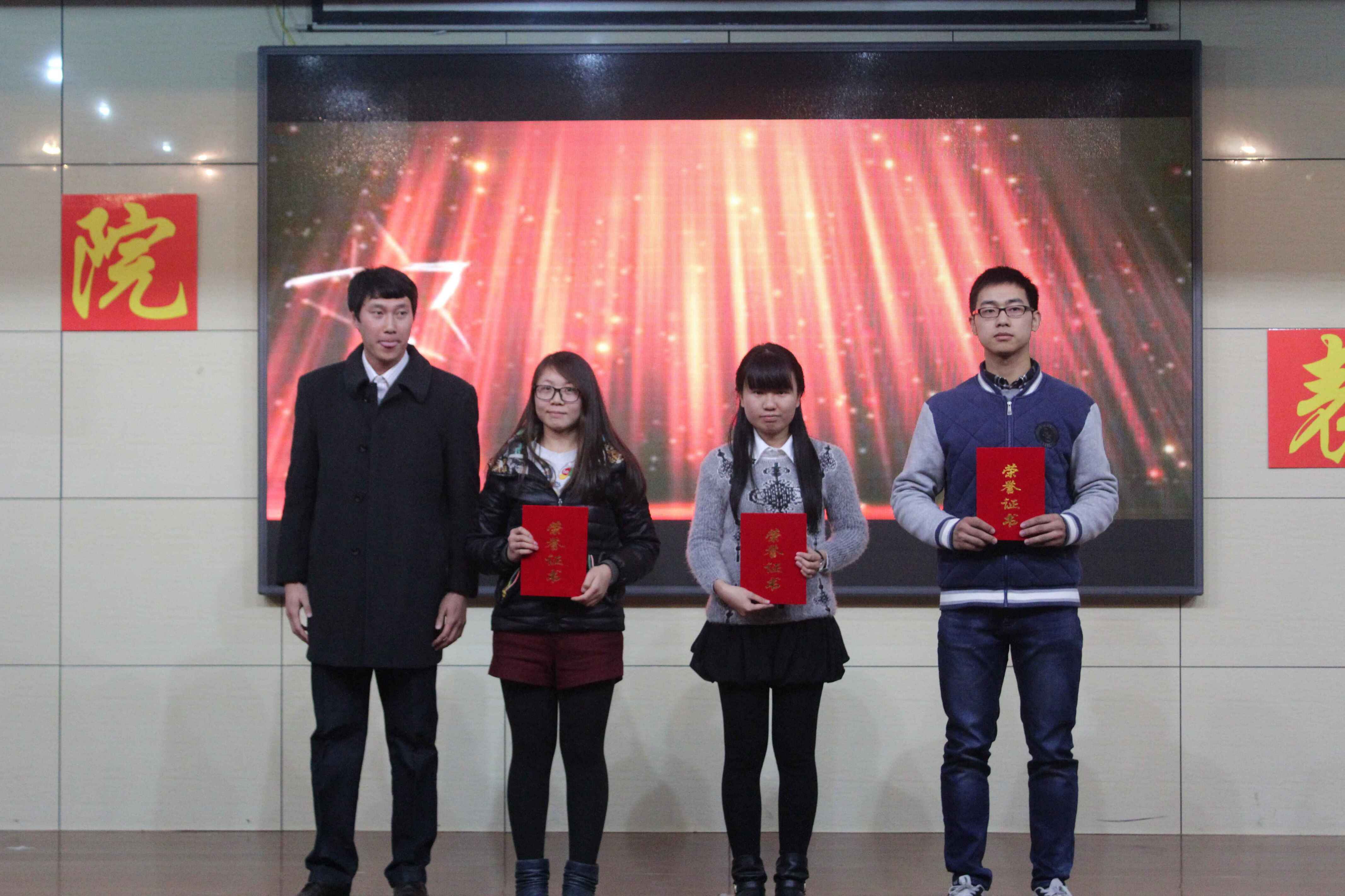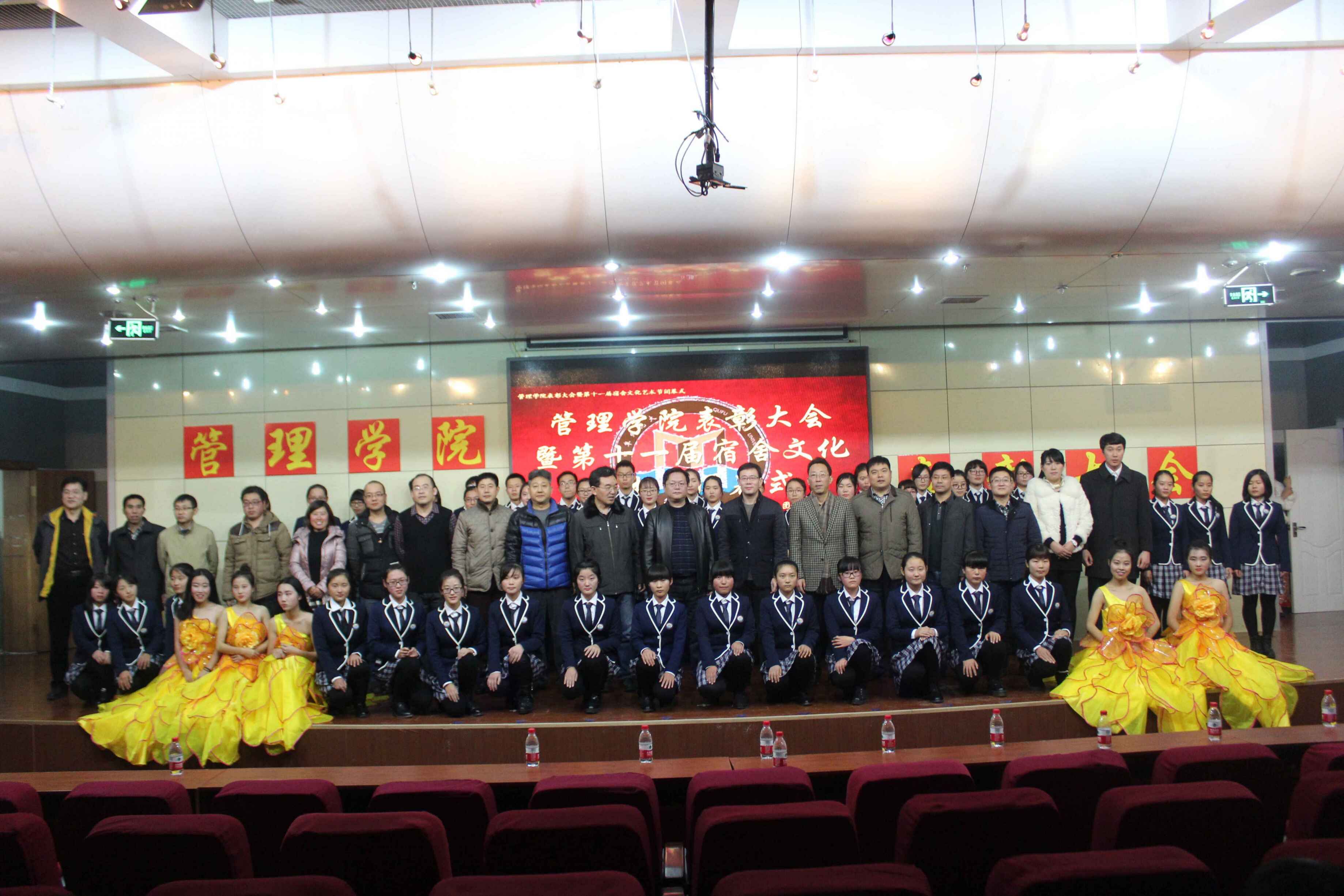 12月19日19:00,由NBA直播88篮球 团总支学生会主办,宿管部、文艺部承办的表彰大会暨第十一届宿舍文化艺术节闭幕式于图书馆报告厅顺利举行。山东省人大常委、NBA直播88篮球 院长张玉忠,NBA直播88篮球 党总支书记王刚,我校团委副书记、学生工作办公室副主任陈庆国,NBA直播88篮球 副院长王宜举,NBA直播88篮球 党总支副书记赵杰等出席此次活动。