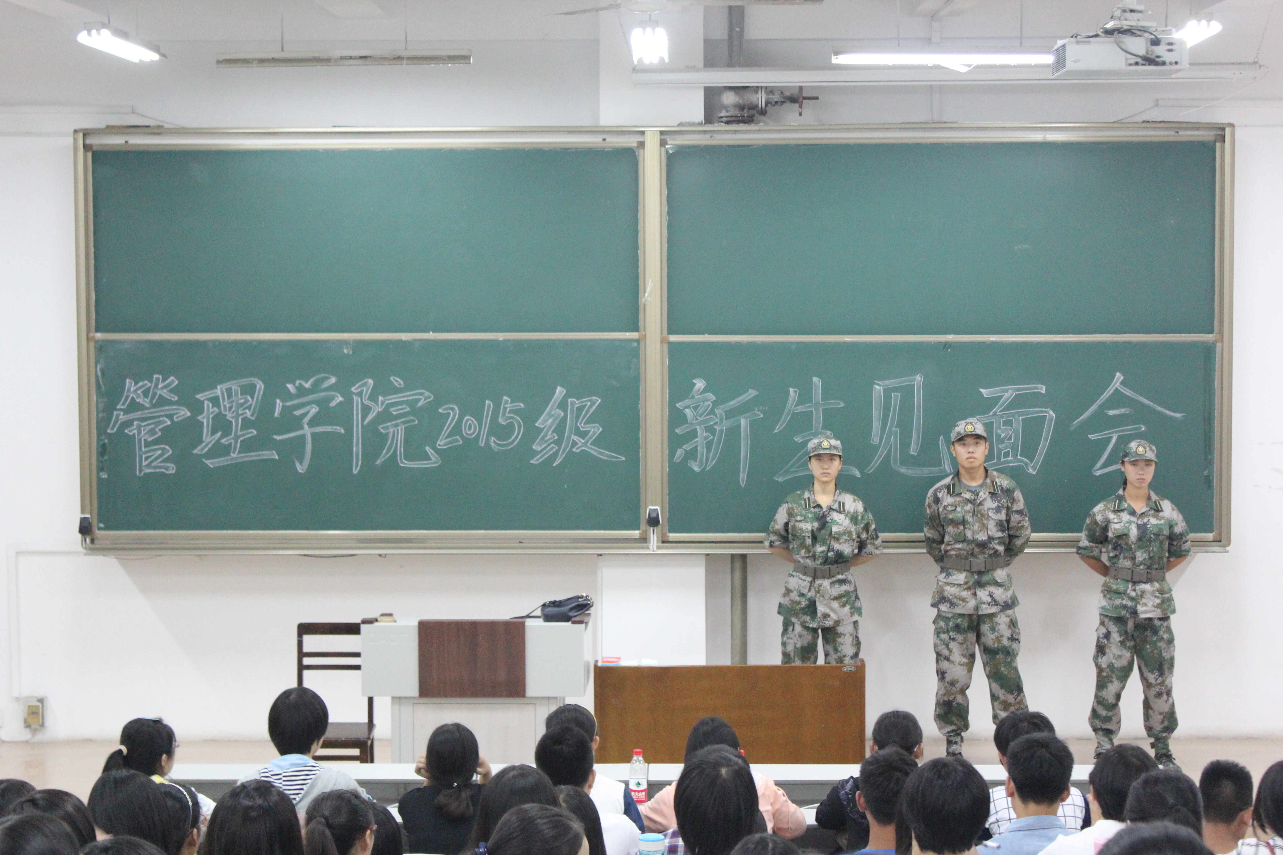 见面会在新同学们热烈的掌声中开始,宋书记向全体新生的到来表示热烈的欢迎和衷心的祝贺,并进行了简单的自我介绍。在强调了即将到来的军训的具体安排之后,宋书记从安全和纪律两大方面展开了此次见面会。她指出,在校期间应快速实现从高中生到大学生的角色转换,履行大学生的职责。“像水一样做人,做一个使别人舒服的人”,宋老师希望全体2015级新同学都能拥有一个有规划、有目标的大学生活。此次新生军训中,88篮球 三名国旗护卫队成员担任军训教官。见面会上,三位教官依次发言,从着装、饮食、请假三个方面向全体新生强调了军训期间严明的纪律。
