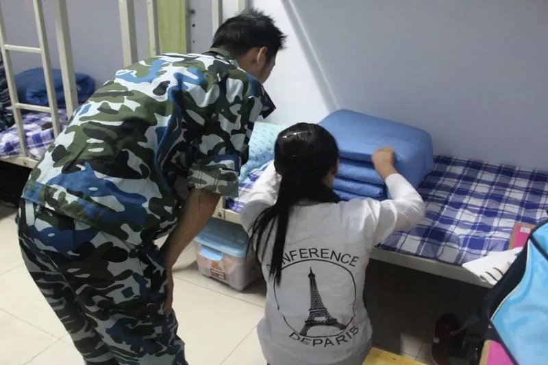 此次培训主要包括床铺整理、书桌物品摆放、宿舍地面卫生打扫及公共区域卫生处理等方面。88篮球 宿管部成员们认真贯彻学校内务整理标准,不放过任何一个细节,对新生内务整理细心地监督和指导。示范叠被子的同学细致地告诉新生们哪一条边需要捏一捏,哪一条线需要拉一拉,在场的同学们边听边仔细地观察。大一新生们积极配合,认真响应。在仔细学习示范的每一个动作后,他们一丝不苟地开始了内务整理。期间,宋书记与同学们进行了愉快地交流,并提醒大家注意饮食安全和休息,保持好体力参加到军训训练中去。
