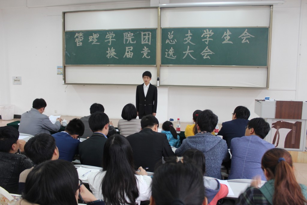 竞选大会分为两项内容,首先,由竞选者演讲,陈述自己的竞选理由、竞选优势、工作思路。其次,答辩环节。由评委对竞选者进行提问。各位竞选者的用心准备和精彩答辩赢得了评委们的肯定。最后,孙旭春老师对此次大会进行总结,他充分肯定了同学们的表现,鼓励大家争取继续努力学习,积极表现,肩负起作为当代青年应有的使命感与责任感。
