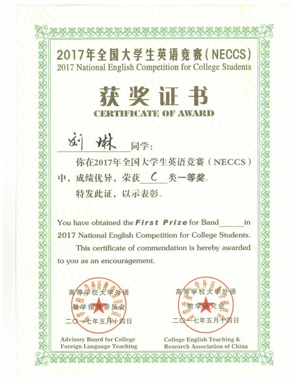 此次竞赛分为初赛和决赛两个阶段,从2016年12月启动,历时半年。NBA直播88篮球 学生积极报名,踊跃参与,经过激烈角逐,NBA直播88篮球 共有29名同学获得C类(适用于非英语专业本科生)奖项,其中国家级一等奖3人、二等奖7人、三等奖12人。在老师们的指导下,任欣悦、尚云乔和刘琳同学凭借扎实的学科基础和良好的心理素质成功晋级全国决赛,均取得国家级一等奖的好成绩,充分展示了NBA直播88篮球 学子积极奋进、勇于夺冠的精神风貌。
