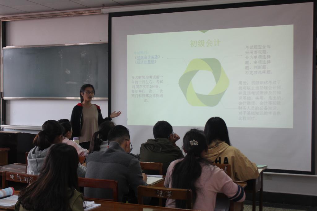 此次证书讲解活动分为证书和竞赛两部分。其中证书部分又分为基本证书和专业证书。基本证书包括大学英语四六级,计算机二级证书以及普通话等级考试证书。专业证书则根据四个班专业类型分别进行讲解。竞赛部分涉及到大学生英语竞赛,全国大学生数学建模,数学竞赛等一系列重要的比赛。四位主讲人通过PPT清晰地向同学们展示了本次讲解的要点。