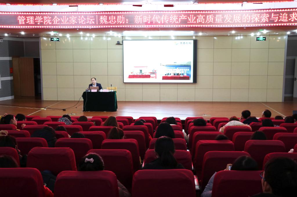 浏览量: 更新日期:2018-11-2911月29日,NBA直播88篮球 于图书馆报告厅举办主题为“新时代传统产业高质量发展的探索与追求”企业家论坛,鲁泰控股集团党委副书记、董事、总经理魏忠勋受邀主讲,NBA直播88篮球 院长王宜举、党委副书记赵杰、团委书记孙旭春出席,88篮球 学生和部分教师参加。