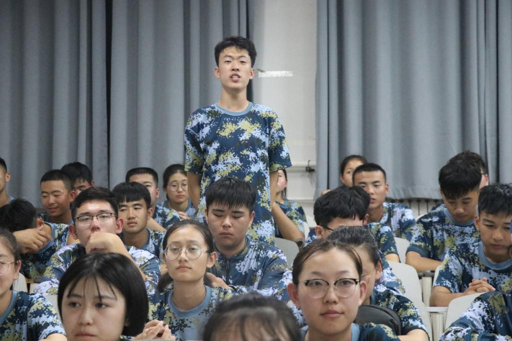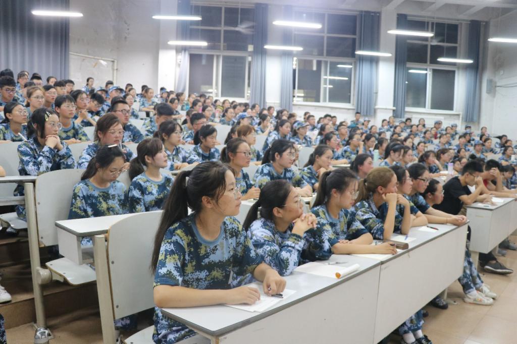 新生主题班会在阵阵掌声中拉开帷幕,董老师首先对全体新生的到来表示热烈的欢迎,并进行了简单的自我介绍。此次主题班会,董老师围绕“军训、学习、安全、宿舍、请假”五个方面进行讲解。她表示,新生已褪去高中的青涩,转变为一名大学生,希望新生能够履行自己的职责,在军训期间保证不迟到、服从教官的命令;在学习方面认真努力,考取相应证书;在宿舍里整理好内务,处理好舍友之间的关系,营造良好的氛围;并且积极向带班、班助及朋辈导师看齐,打造更优秀的自己。随后,董老师送以新生三句话,希望他们把大学当成一个新的起点,在大学里不断充实自己,成长为德才兼备、全面发展的人才。