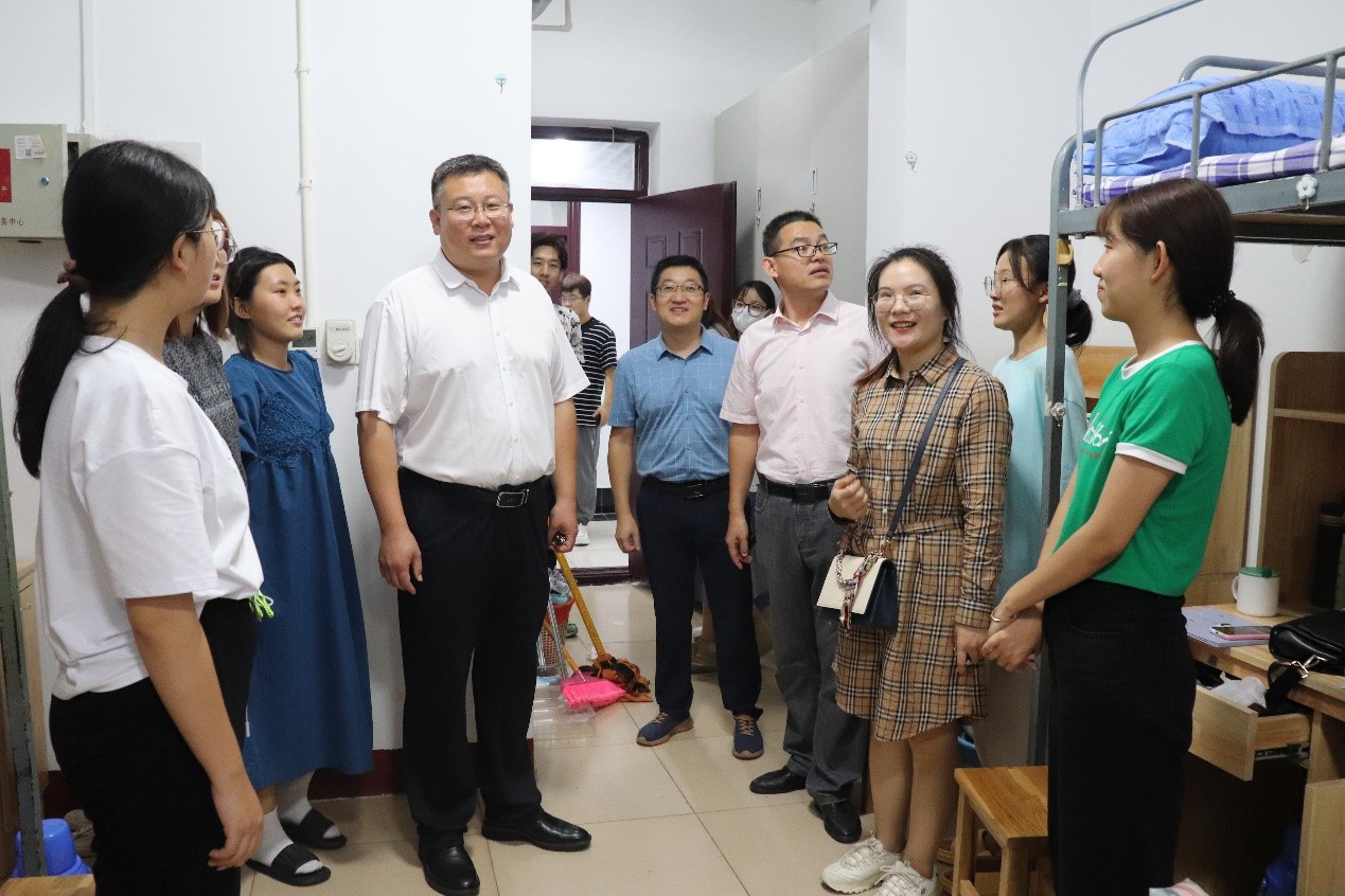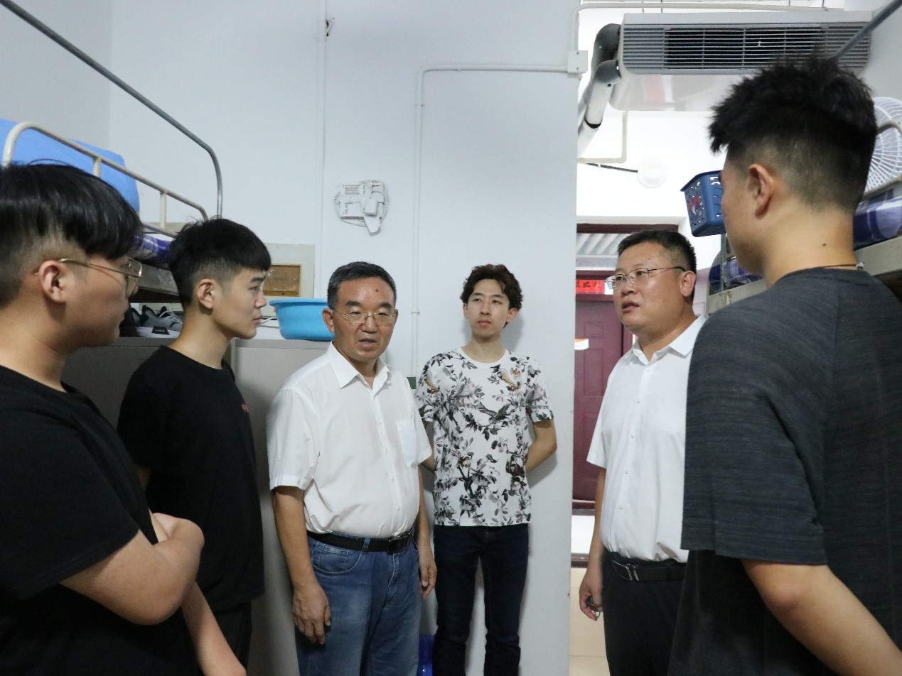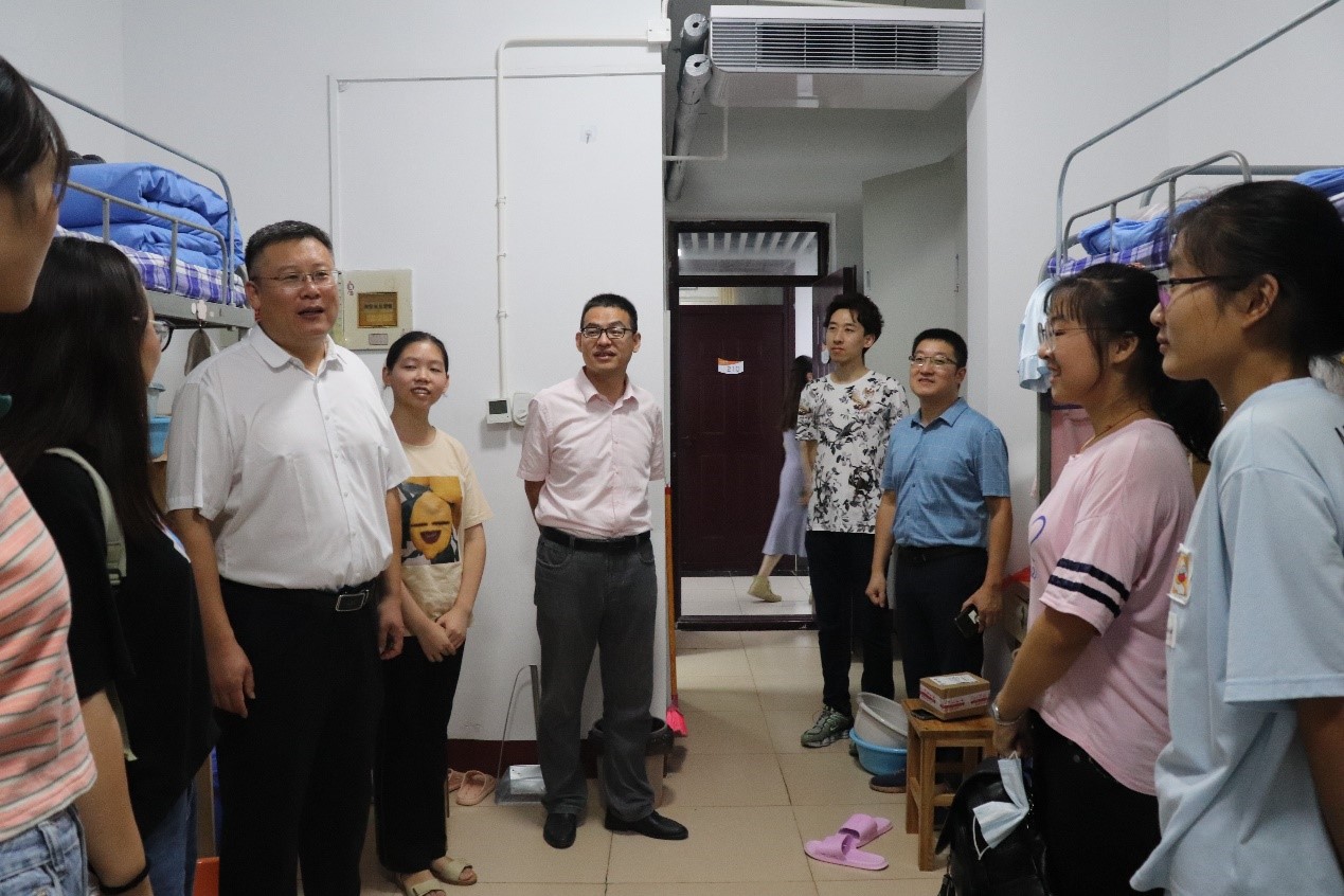 9月12日,NBA直播88篮球 党委书记徐正伟,院长王宜举,党委副书记刘洪铎,副院长刘金发、柏庆国及各年级辅导员深入新生宿舍园区看望21级本科与研究生新生。