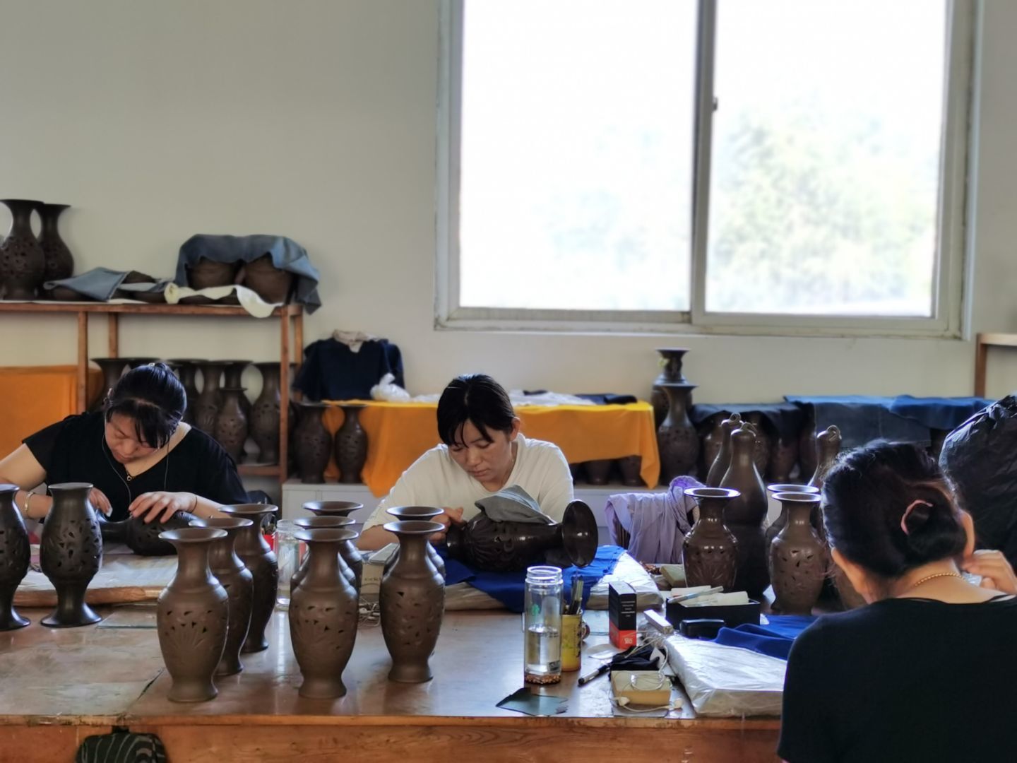 为确保实践调研的顺利进行,惟精惟一实践队在实践前期做了充分的准备工作,从时事热点到社会痛点等 方面最终确定以“互联网助力非遗文化赋能乡村振兴,构建国粹之美将来时”为主题开展相关社会实践活动。团队成员在老师的帮助下积极讨论查阅资料,最终选定两城镇黑陶与五莲县刘氏盘扣相关非遗文化为主要实践地点。