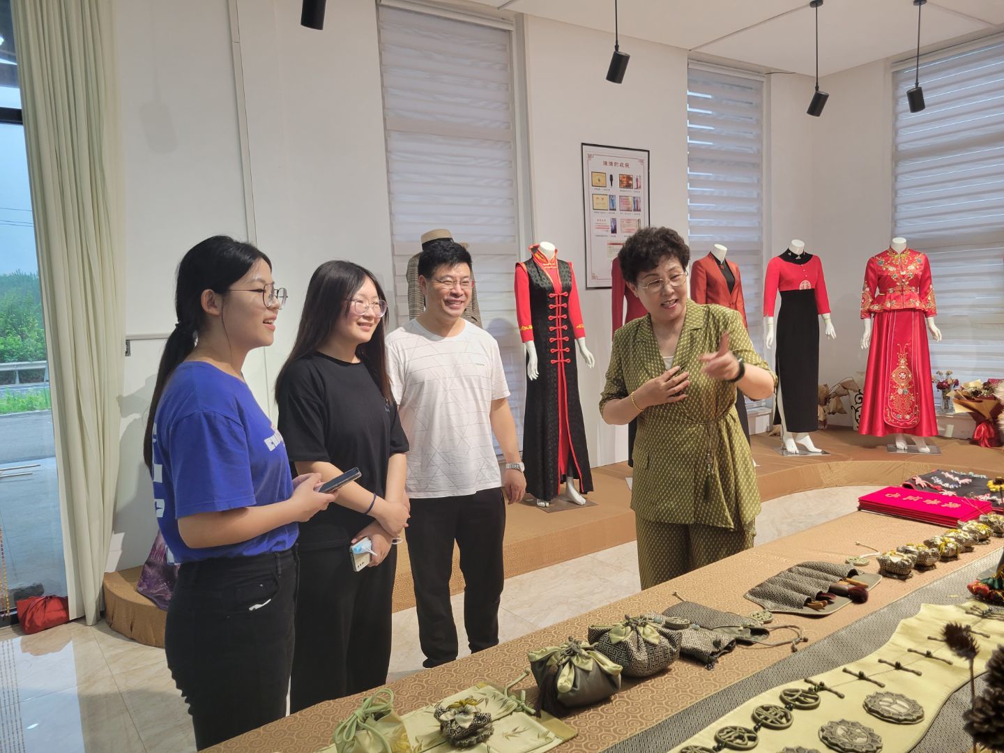 6月29日,为深入了解日照本地非遗文化发展现状,探索互联网于非遗文化传承与发展中发挥的作用,实践团队员于前期与刘氏盘扣第五代非遗继承人刘冬梅线上沟通交流,前往五莲县刘氏盘扣工作馆,与刘冬梅老师进行面对面谈话,了解一条布的历史与艺术。