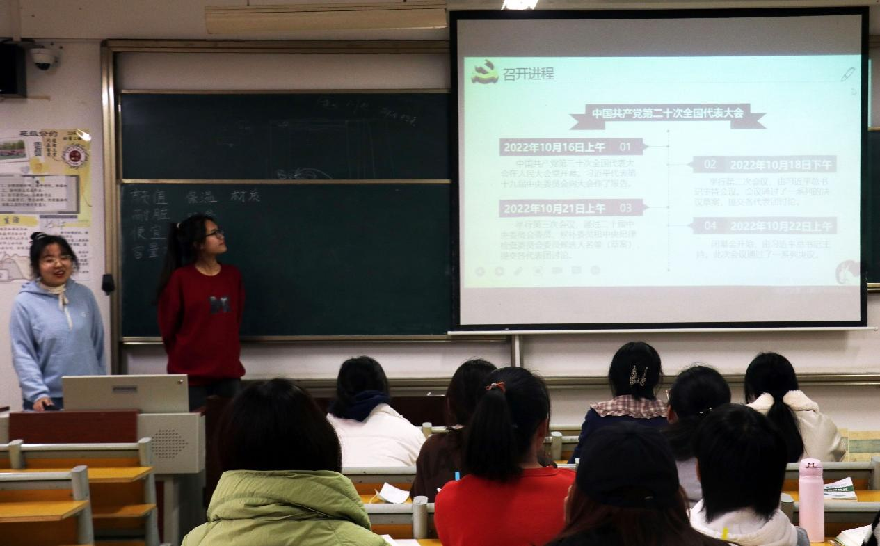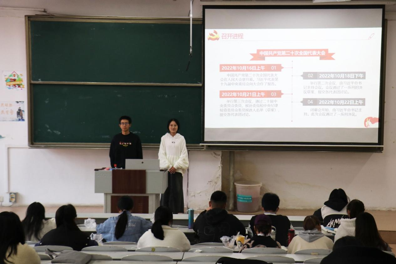学思践悟凝共识,强国追梦再出发。本次党的二十大精神宣讲活动从四个方面展开。首先,宣讲团的成员为同学们介绍了党的二十大的召开进程、大会主题等相关内容,随后带领同学们回望历史、展望未来,通过分析当前形势,指出时代的重任已赋予青年,号召曲园学子在新时代贡献出的青年力量。此次宣讲活动效果显著,同学们深入了解到有关于党的二十大的相关知识,并切实把党的二十大精神学懂弄通、学深悟透,在青年学生中掀起了学习宣传贯彻党的二十大精神的热潮。