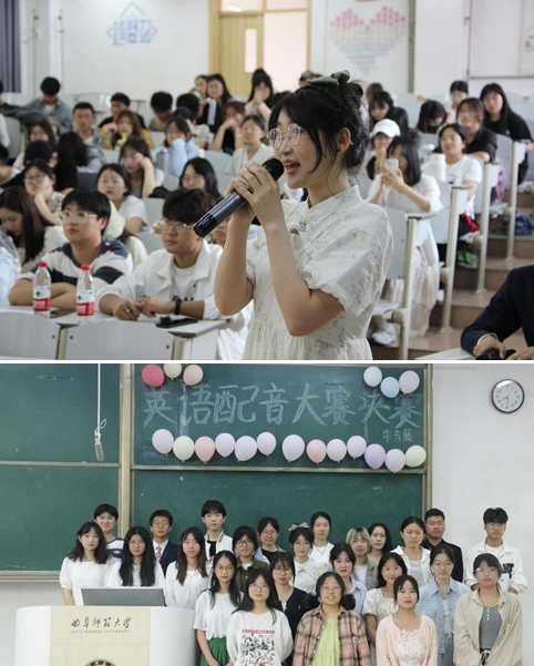 本次决赛精心设计了三个环节,旨在全方位考察参赛选手的英语应用能力。第一环节,八支参赛队伍分别针对视频中的不同角色进行配音,各队伍凭借生动逼真的表演和精准无误的发音,赢得了现场观众的热烈掌声与高度认可;比赛进入第二环节,每支队伍的代表随机抽取绕口令并进行朗读,重点考察选手英语口语的流利程度;第三环节则是紧张刺激的单词接龙。在这一环节中,各组选手需根据所展示单词的最后一个字母,依次进行接龙传递。选手们争分夺秒,现场气氛既紧张又热烈。经过三个环节的激烈比拼,评委们根据参赛队伍的综合表现进行了打分,并为获奖队伍颁发了荣誉证书。
