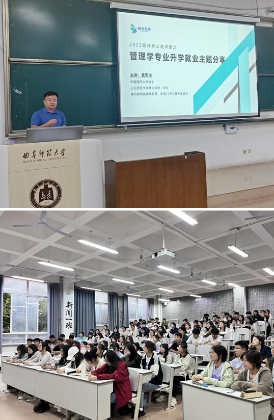 浏览量: 更新日期:2024-10-14(通讯员:吕汉宇 摄影:孙琬婷 贾伟灿)为积极应对当前复杂多变的就业形势,切实提升就业竞争力,为同学们提供就业与考研方面的全面指导与帮助。NBA直播88篮球 于10月12日特邀中国海洋大学硕士、峰研教育首席规划师、山东省教育发展促进会教育管理专委会副秘书长、山东财经大学就业导师及校友黄军杰老师,为2022级学生作考研和就业规划的指导报告。