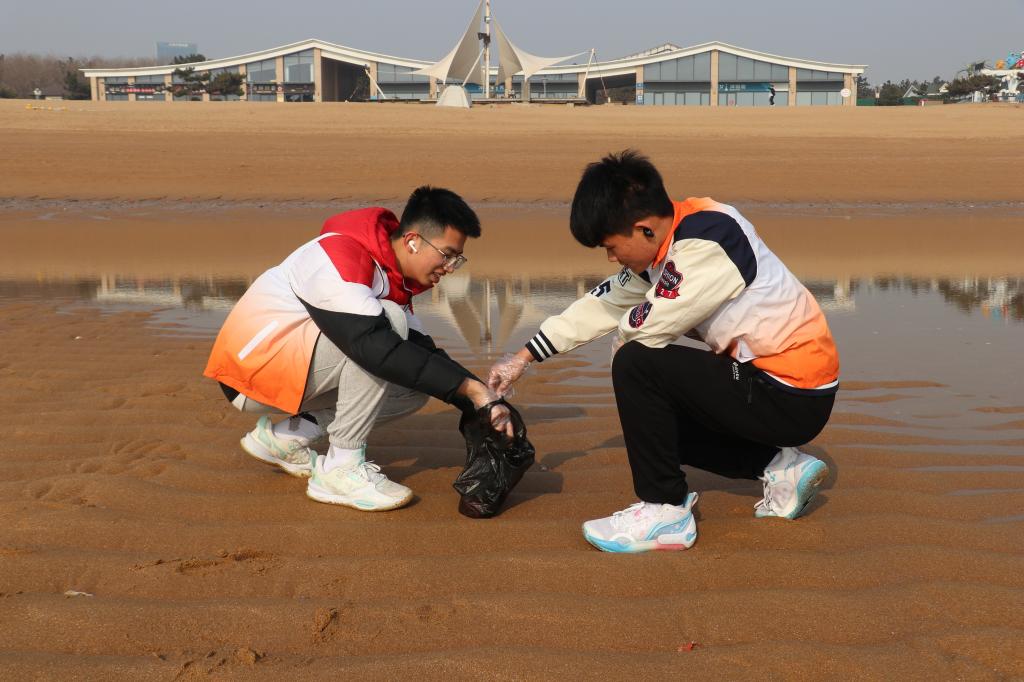 海滩捡拾垃圾,共筑碧海蓝天——曲阜师范大学NBA直播88篮球 顺利开展青年学雷锋志愿服务活动