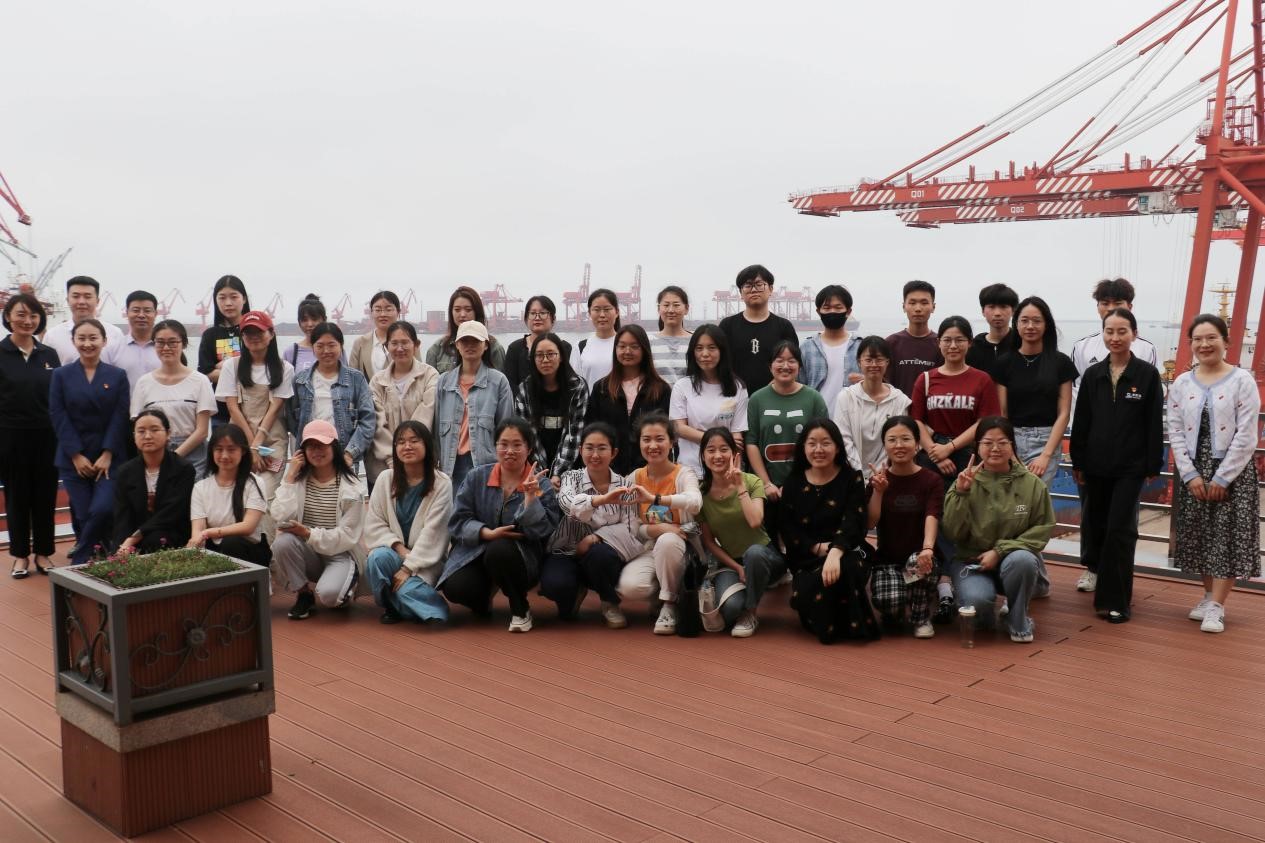 图为管院学子参观日照港后合影留念