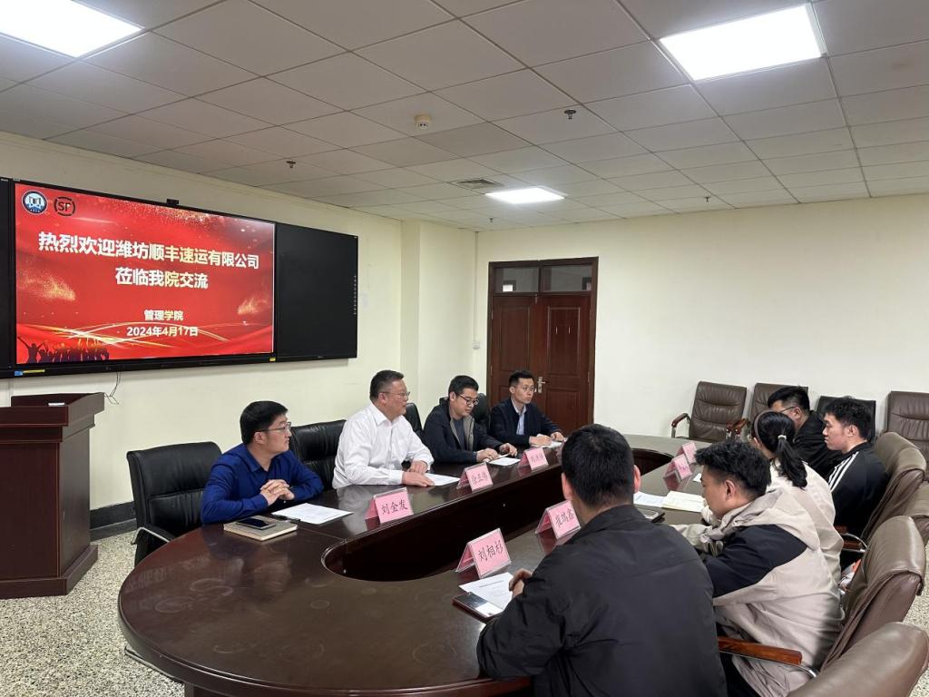为落实访企拓岗促就业专项行动,深化校企合作,进一步了解用人单位需求,拓展学生就业空间,4月17日,88篮球 邀请顺丰速运鲁中区和日照区域公司负责人来校召开就业工作推进会暨“访企拓岗”座谈会。88篮球 党委书记徐正伟、党委副书记刘洪铎、副院长刘金发、物流管理专业系主任王成飞参会,会议由党委书记徐正伟主持。
