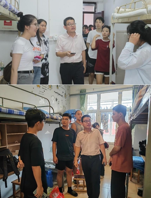 走访过程中,老师们细致查看了学生宿舍的清洁状况、设备配置以及安全措施,并与新生和家长进行了深入交流,了解他们对校园环境的适应程度、学习与生活安排,并提醒新生要注意个人卫生和宿舍安全,还对学校的各项规章制度及开学事宜进行了说明;老师们鼓励新生要迅速适应大学生活,积极投身于各类校园文化活动之中,以开阔视野,丰富知识;老师们的关怀使新生感受到了家庭般的温馨,他们一致表示将珍视大学时光,勤奋学习,不辜负青春年华。
