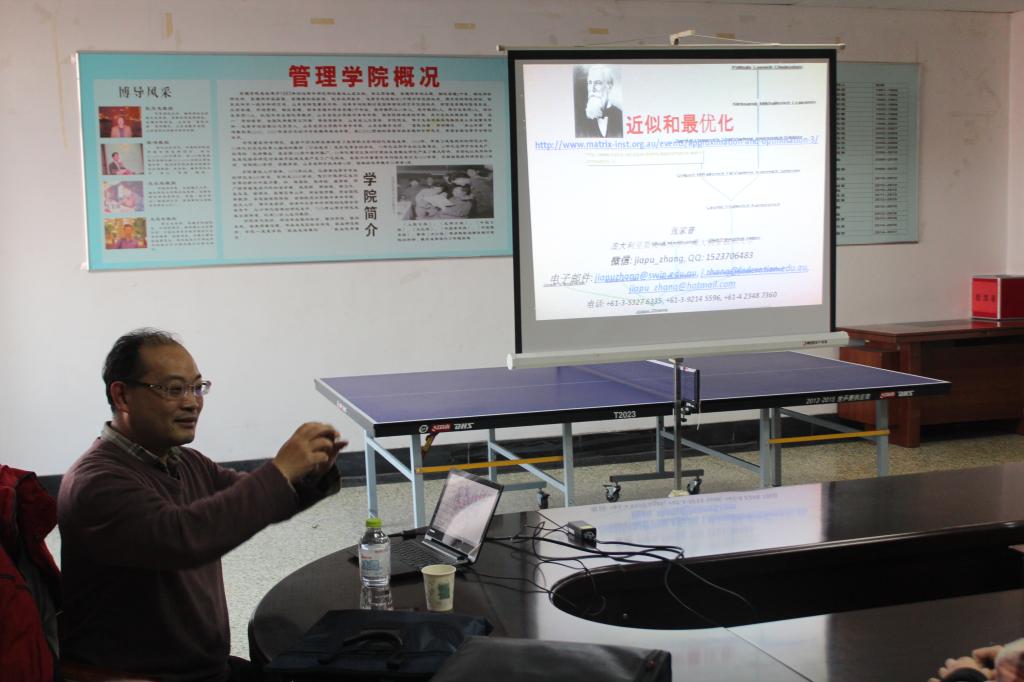 应88篮球 的邀请,2016年12月6日下午,来自澳大利亚的张家普博士来88篮球 进行学术交流,做了题为“ChebyschevPolynomical Approximation”学术报告,同时,张家普博士还从自身的科研入手,以点带面介绍了最优化理论方面的专业知识、最优化理论与其他学科的交叉、科研课题的选题、发展等。张家普博士的报告让老师和同学们对最优化理论的应用有了更广泛的理解,为同学们学习最优化理论提供了更广泛的视角,让同学们更有信心和兴趣做最优化理论的研究,扩展了知识面,提升了研究兴趣,让老师和同学们受益匪浅。报告会结束后,张博士还和研究生同学进行了多方面的深入交流。会议由屈彪老师主持,88篮球 相关教师和全体研究生参加。