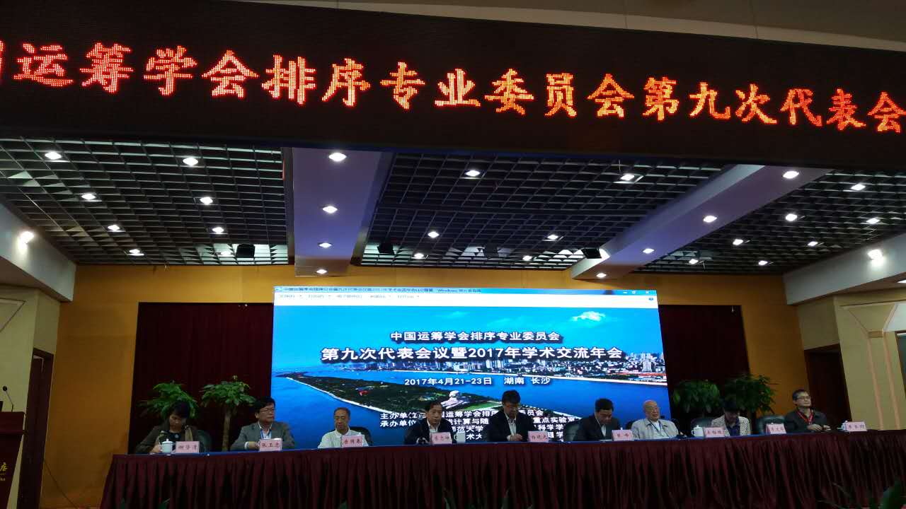 浏览量: 更新日期:2017-04-25中国运筹学会排序专业委员会(国家二级学会)于2017年4月21-23日在湖南长沙举办了排序专业委员会第九次全国代表会议暨2017年学术交流年会。会议的主要内容是审议学会工作报告、进行中国运筹学会排序专业委员会换届选举。大会选举产生了第九届中国运筹学会排序专业委员会理事会及第九届理事会领导班子。我校NBA直播88篮球 院长张玉忠教授当选为新一届(第九届)理事会理事长。这是张玉忠教授自2016年当选为中国运筹学会(国家一级学会)副理事长以来,当选为国家二级学会理事长。由此我校成为国家一级学会和二级学会双理事长单位。