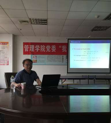 6月10日下午四点和晚上八点,中国科88篮球 数学与系统科学研究院戴彧虹研究员,应88篮球 邀请,在C楼819会议室分别做了题为“A Penalty-Free Method with Superlinear Covergence for Equality Constrained Optimization”和“最优化点滴谈”的学术报告。参加本次报告会的有张玉忠院长、屈彪副院长、部分青年教师及研究生。