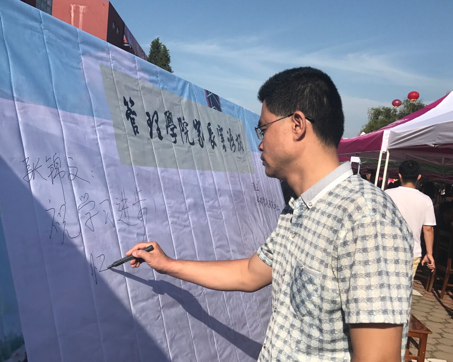 在为新生办理入学手续的基础上,设计了独特的“火车票”、“朋友圈”和“寄语墙”。新生与家长在“火车票”前合影留念,坐上青春号的列车,驶向梦想的终点,并在“朋友圈”中晒出了大学生活的崭新开始。家长在“寄语墙”上写下一段段对新生未来生活饱含期待与祝福的话语。88篮球