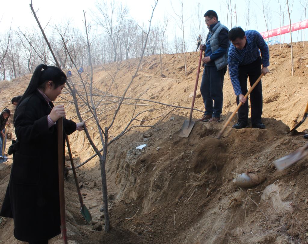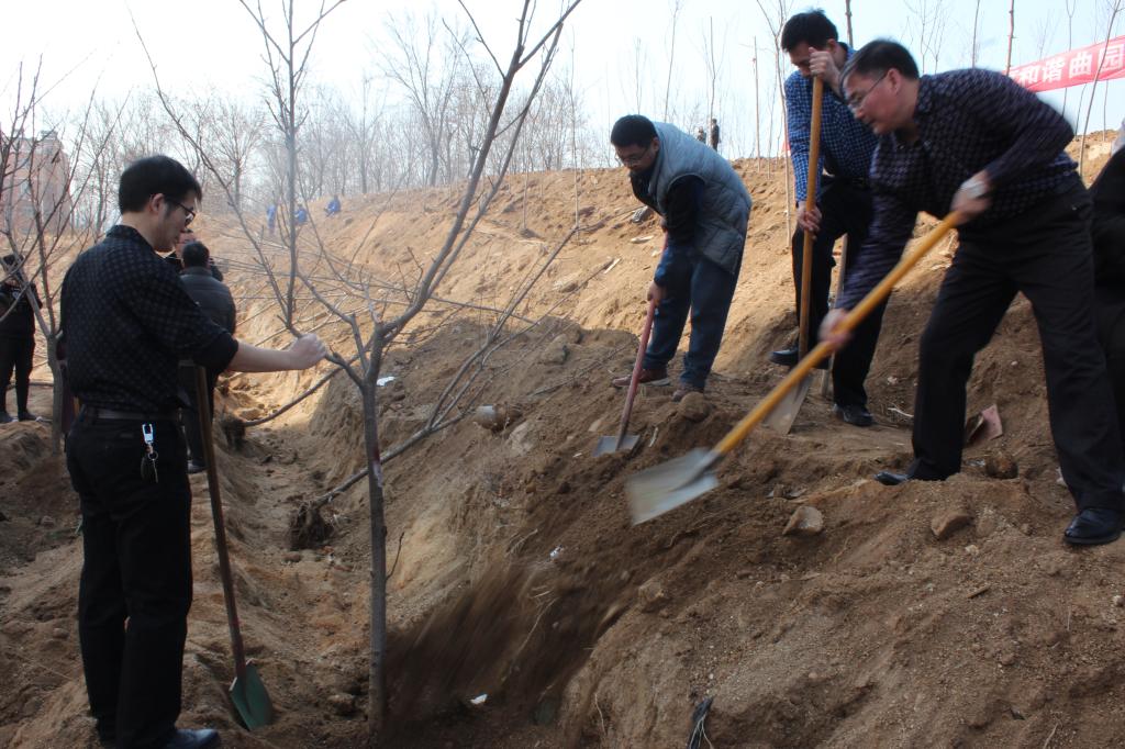 植树现场,师生通力协作,合理分工。挥锹培土,踩实压平,提水浇苗,一派热火朝天的忙碌景象。不少同学表示,“多添一份绿,我们的校园环境就多一分保护”。百余棵树苗在师生们的共同努力下,植立于曲阜师范大学的土壤上,迎着春日的阳光,焕发着生机与活力。