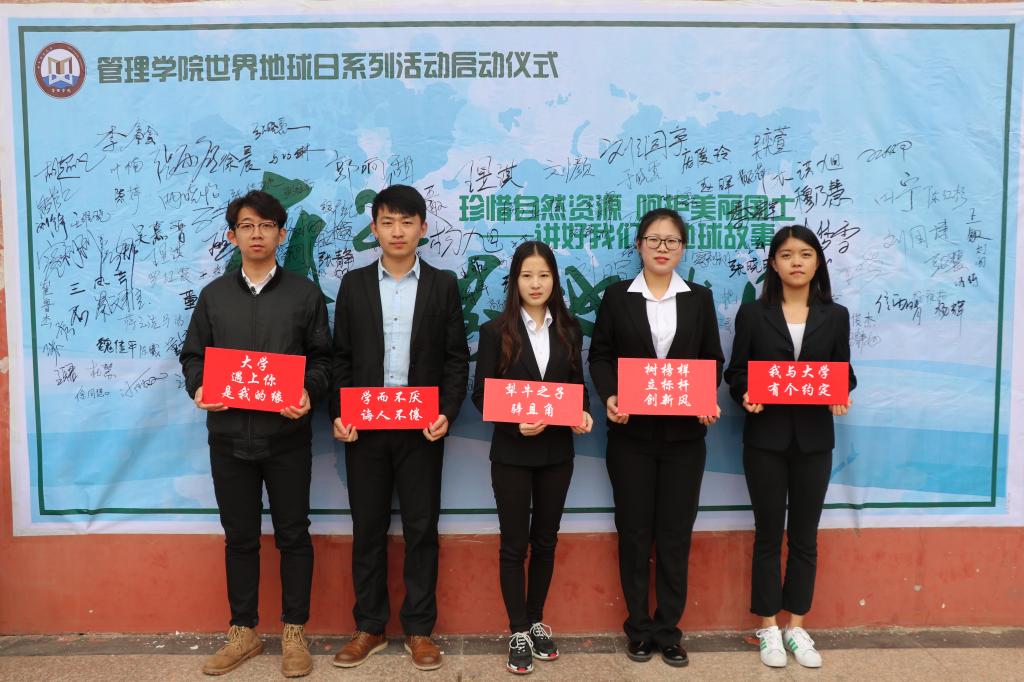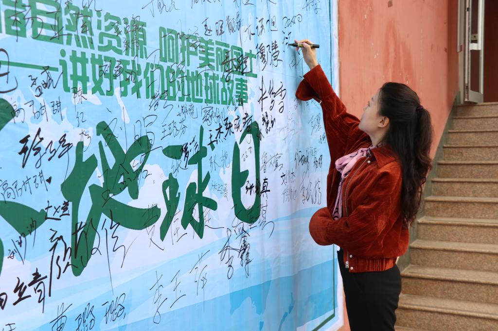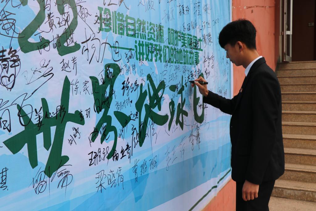 本次签名活动以第49个世界地球日为契机,号召大家树立正确的环保观,倡导绿色简约生活,呼吁大家呵护校园环境,努力践行十九大报告中习近平总书记指出的“绿水青山就是金山银山”和“美丽中国四大举措”,树立“人与自然和谐共生”理念,保护我们的生态文明,共建美好家园。