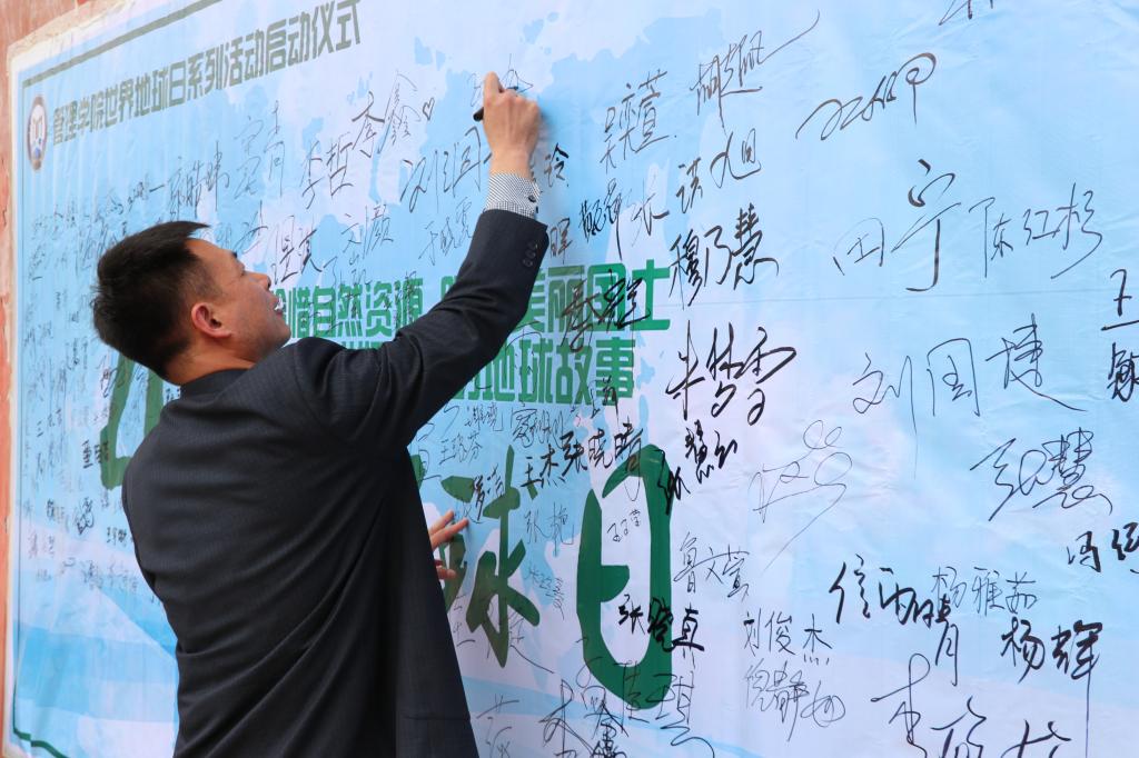 浏览量: 更新日期:2018-04-22为进一步引导广大学生节约资源,保护环境,营造绿色和谐校园氛围,NBA直播88篮球 于4月21日举行了2018年度“珍惜自然资源,呵护美丽国土——讲好我们的地球故事”地球日启动仪式签名活动,辅导员于滢源、班主任老师及全体学生参加了此次活动。活动由院团委书记孙旭春主持。