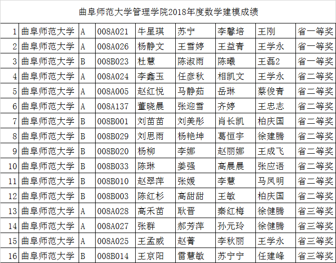 浏览量: 更新日期:2018-10-14近日,2018年全国“高教社杯”大学生数学建模竞赛获奖结果揭晓。曲阜师范大学NBA直播88篮球 在竞赛中发挥出色,再创佳绩。共获得省级一等奖3项,省级二等奖9项,省级三等奖4项,获奖比例高达52 %。全校共获奖75项,其中88篮球 获奖16项,获奖率在各88篮球 中名列前茅。