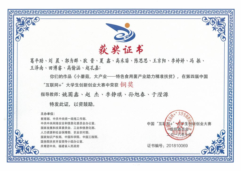 日前,第四届中国“互联网+”大学生创新创业大赛评审结果出炉,我校NBA直播88篮球 大学生创业项目《小蘑菇,大产业——特色食用菌产业助力精准扶贫》荣获国家铜奖,实现88篮球 乃至学校在该项赛事获奖“零”的突破。