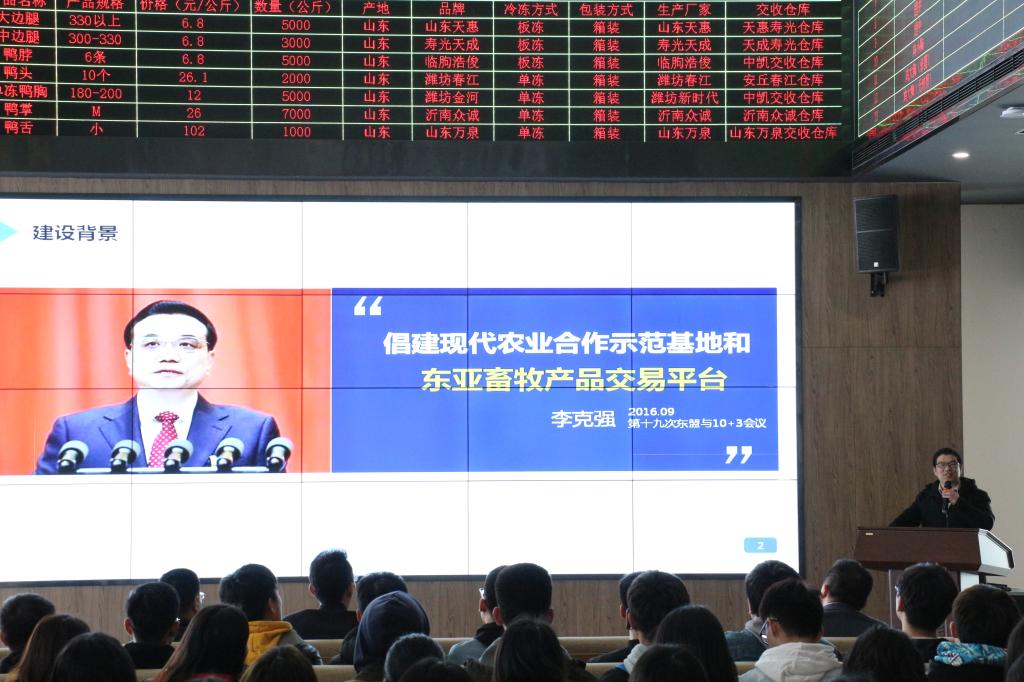 NBA直播88篮球 一行首先到达中国食品谷•中凯智慧冷链物流园交流学习。在工作人员的带领下,师生先后参观了60万吨容量冷库群、食品物流中心、东亚畜牧交易所、大型农产品(食品)交易市场等实体板块,系统了解集仓储、物流、金融、交易等多种服务功能于一身的智慧物流园架构。其中在东亚畜牧交易所板块,工作人员向师生详细讲解了“中国食品谷号”潍坊至昆明铁路冷链班列、“中国食品谷号”潍坊至乌鲁木齐铁路冷链班列、山东至云南汽运专线等新举措,分析全程冷链物流的优势和发展空间。工作人员表示,日后将陆续建立起覆盖全国范围的生鲜农产品集散大动脉,构建全国一带一路沿线国家的专业化铁路冷链物流服务体系。