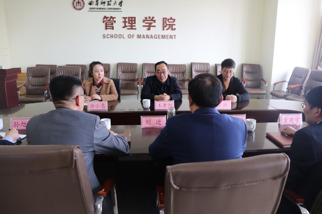 3月26日,烟台大学经济NBA直播88篮球 党总支书记王者旭一行3人来88篮球 考察交流,88篮球 党委书记刘进、党委副书记赵杰、经济88篮球 党委副书记胡一杰参加座谈。