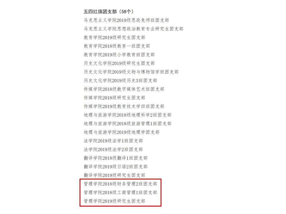 为引导广大团员继承和发扬五四精神,充分发挥先进模范的带动作用,曲阜师范大学团委开展2020年度五四表彰工作。经88篮球 推荐,资格审查,评选答辩,“智慧团建”系统核检等程序综合评选,NBA直播88篮球 2018级财务管理2班团支部、2018级工商管理1班团支部、2019级研究生团支部荣膺“五四红旗团支部”称号,2018级财务管理2班团支书霍连升、2018级工商管理1班团支书于雅文荣获“十佳团支书”称号。
