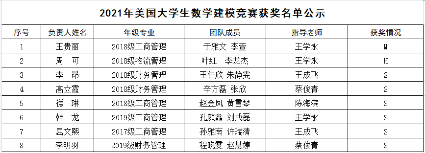 近日,2021年美国大学生数学建模竞赛成绩揭晓,NBA直播88篮球 学子不负众望,在此次竞赛中喜获佳绩。88篮球 共八支队伍获奖,其中一支队伍荣获Meritorious Winner(一等)奖,一支队伍荣获Honorable Mentio(二等)奖,六支队伍荣获Successful Participant(优秀参与)奖。