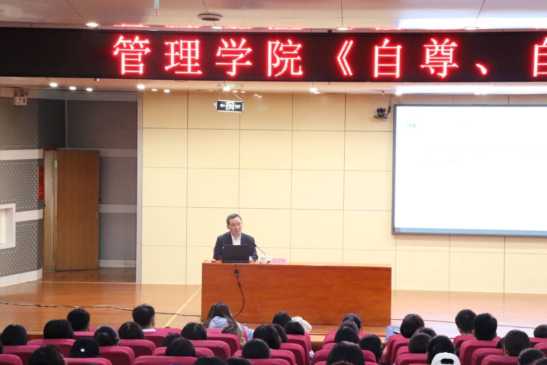 10月10日,NBA直播88篮球 举行新生第二堂思政课系列活动。院长王宜举教授为2021级新生开展《自尊、自爱、自强》主题报告。