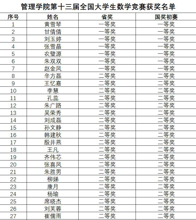 近日,第十三届全国大学生数学竞赛获奖名单正式公布,NBA直播88篮球 学生在国奖初赛中取得优异成绩,斩获省级一等奖7项,省级二等奖26项,省级三等奖14项,占日照校区获奖总人数的38.3%。