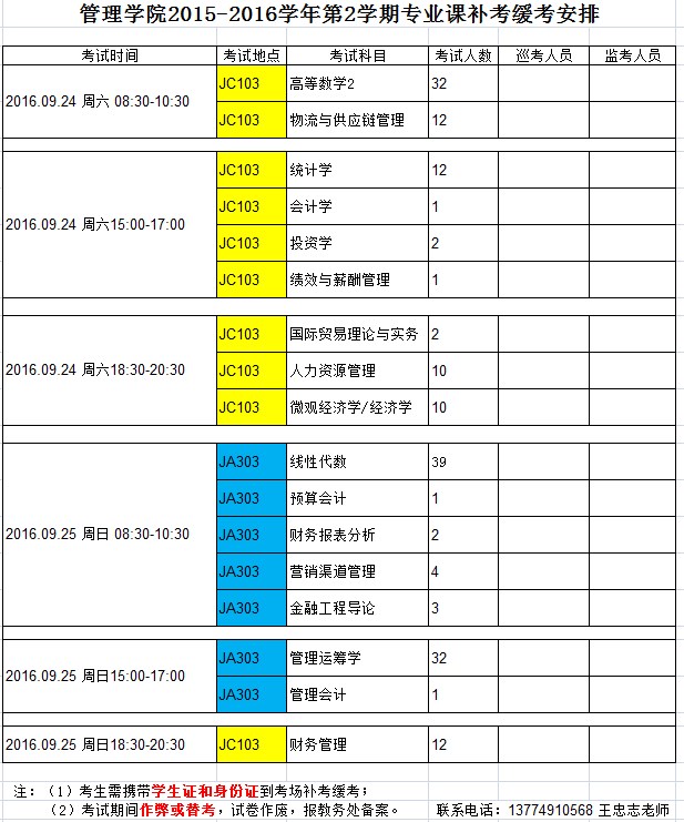 附件1:NBA直播88篮球 2015-2016学年第2学期专业课补缓考安排 20160922