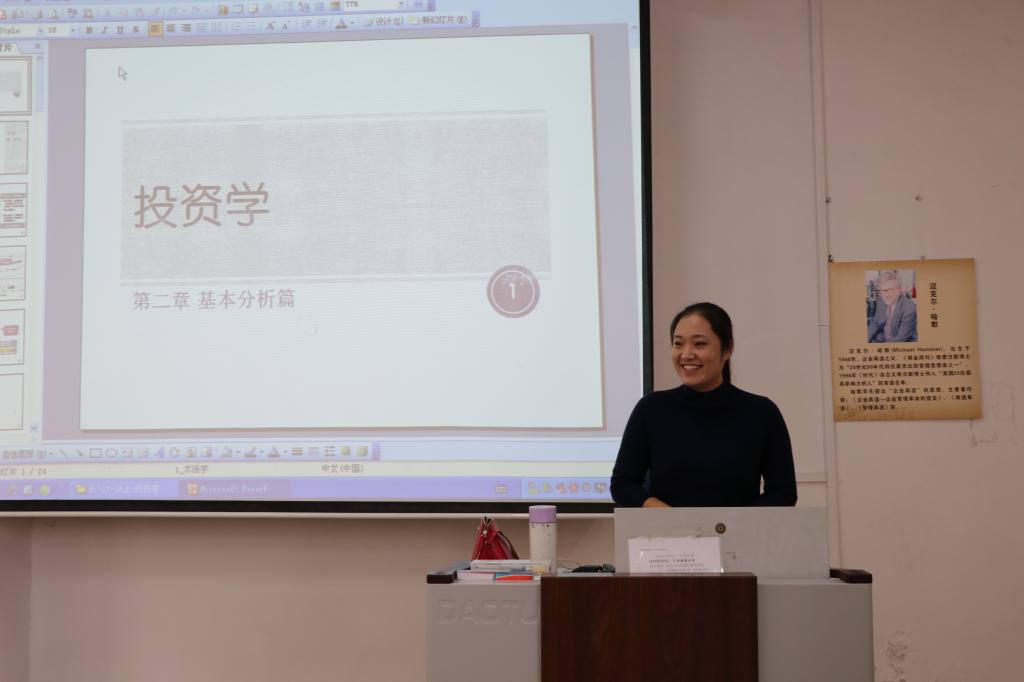 11月3日上午9:00,王帆老师在JA301举行NBA直播88篮球 青年教师公开课第十一讲。本次课程所讲的内容为《投资学——公司价值分析》。王老师以茅台的案例为切入点,引出FCFE模型。随后,王老师重点讲解了该模型的原理和计算公式,并通过案例循循善导,让同学们进一步掌握知识。讲课过程中,王老师精神饱满,声音温柔,将书中苦涩难懂的文字转变成一个个鲜活有趣的画面,让课堂富有活力。