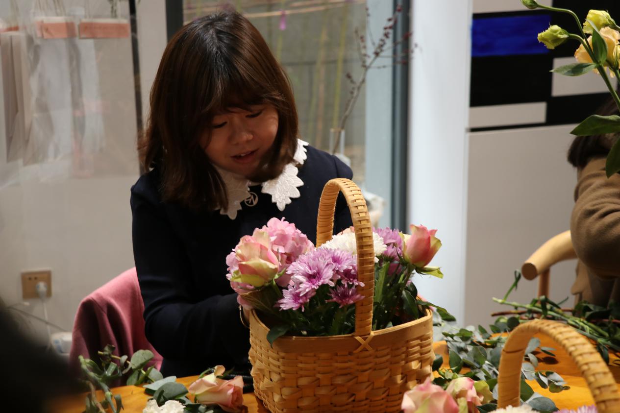 活动伊始,花艺师首先从插花构图、颜色搭配、品类选择和修剪造型等方面介绍花艺基本知识,接着各位老师根据所学知识,结合自己的美感设计,认真修剪花枝,精心构思设计,DIY体验插花的乐趣。活动现场弥漫着鲜花的芳香,让人倍感温馨、浪漫,心情愉悦。